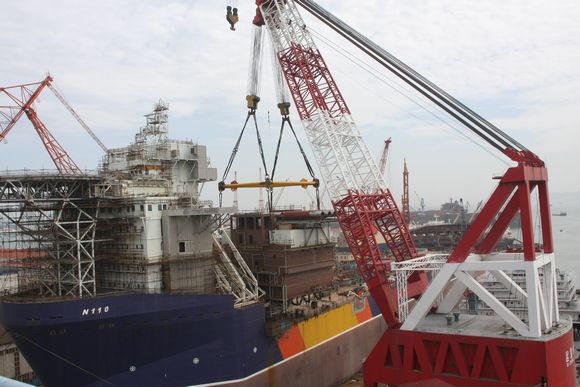 8月20日,在我公司宇航起重3000起重船的大力配合支持下,大連中遠(yuǎn)船務(wù)提前13天完成“大連開(kāi)拓者”號(hào)超深水鉆井船動(dòng)力模塊上船吊裝合攏,為該船的后續(xù)工程打下了良好基礎(chǔ)。