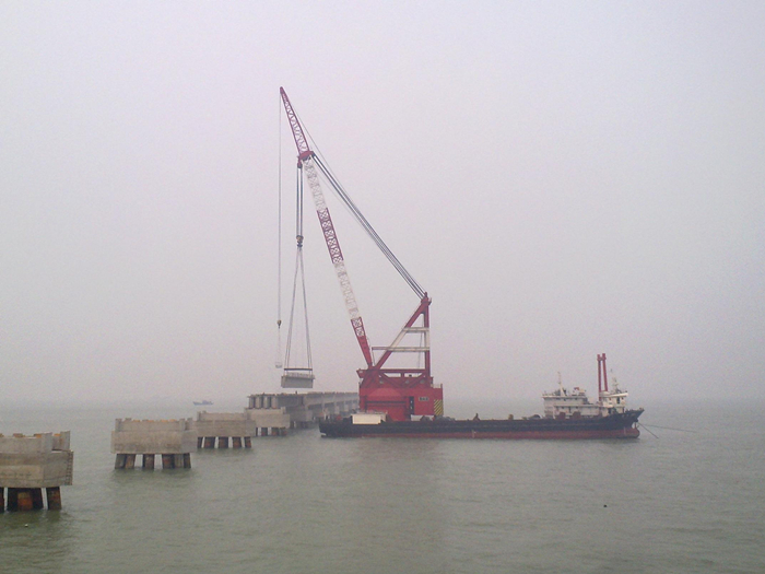 我公司作為二航局的戰略合作伙伴單位,此次工程中我公司的500T全回轉起重船“宇航起重03”負責共277片大型橋面梁的吊裝任務,其中重量**大達200T。該工程的建設,有利于進一步優化山東省東營市物流產業、化工產業布局,促進區域經濟協調發展。