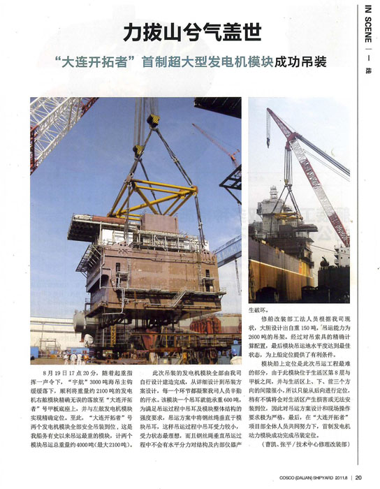 "宇航起重3000"榮登大連中遠船務期刊