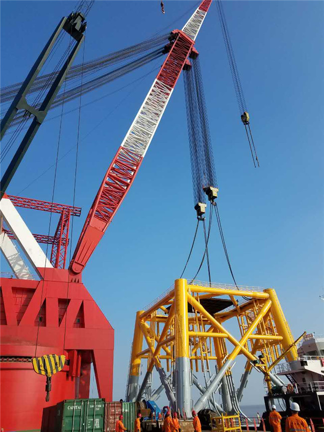 我司宇航起重58參與大唐江蘇濱海300MW海上升壓站基礎吊裝