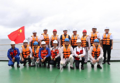 左一:宇航32船長王華 左二:廣西防城港副市長羅真 左三:江蘇宇航海洋工程總經理袁東